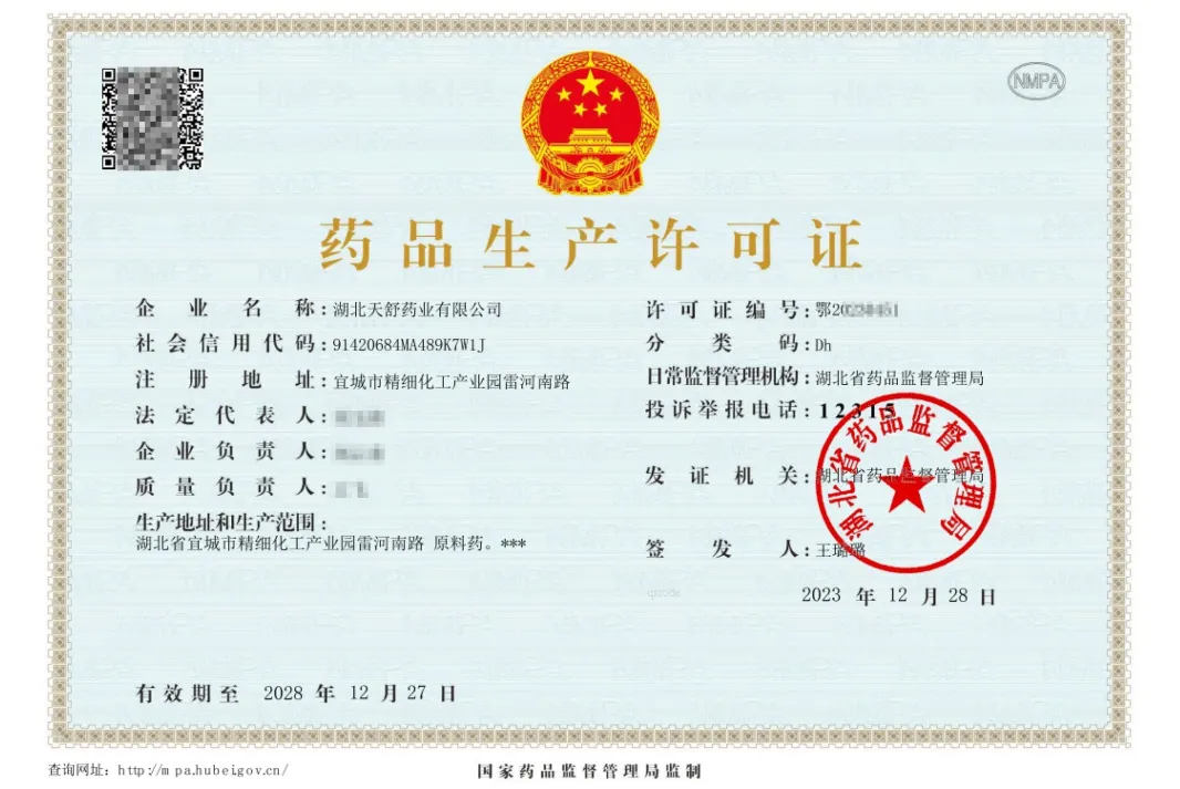 近日,湖北天舒药业有限公司(简称“天舒药业”)顺利通过湖北省药品监督管理局的全面审核,获批《药品生产许可证》(D证)。这标志着天舒药业在母公司南京威凯尔生物医药科技有限公司(简称“南京威凯尔”)打造的“化学+药学+医学”一站式CRO/CDMO服务平台中承担更重的责任,也为天舒药业创新药CDMO服务业务的快速落地和未来商业化生产提供重要保障。