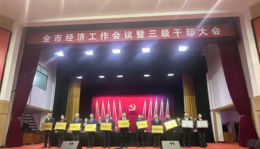 2026年1月25日,宜城市召开全市经济工作会议暨三级干部大会。市委书记武义泉主持会议并讲话,市委副书记、市长王迪作经济工作部署。会议对2025年度为全市经济社会发展作出突出贡献的先进集体和个人进行了表彰。湖北天舒药业有限公司(简称“天舒药业”)凭借在产业升级、研发创新、县域赋能等方面的亮眼表现与突出贡献,荣获“2025年度县域经济发展先进集体”荣誉称号,成为宜城市生物医药领域推动经济发展的中坚力量。天舒药业总经理刘云龙作为企业代表参会并登台领奖。